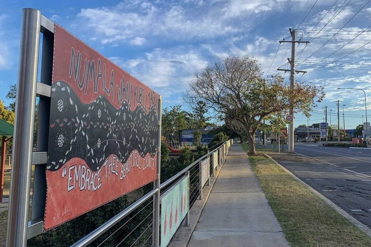 Be sure to check out the local art panels with the words, Numala wani kubill jagun (embrace thee beautiful country), by Mununjali artist Derek Fogarty.