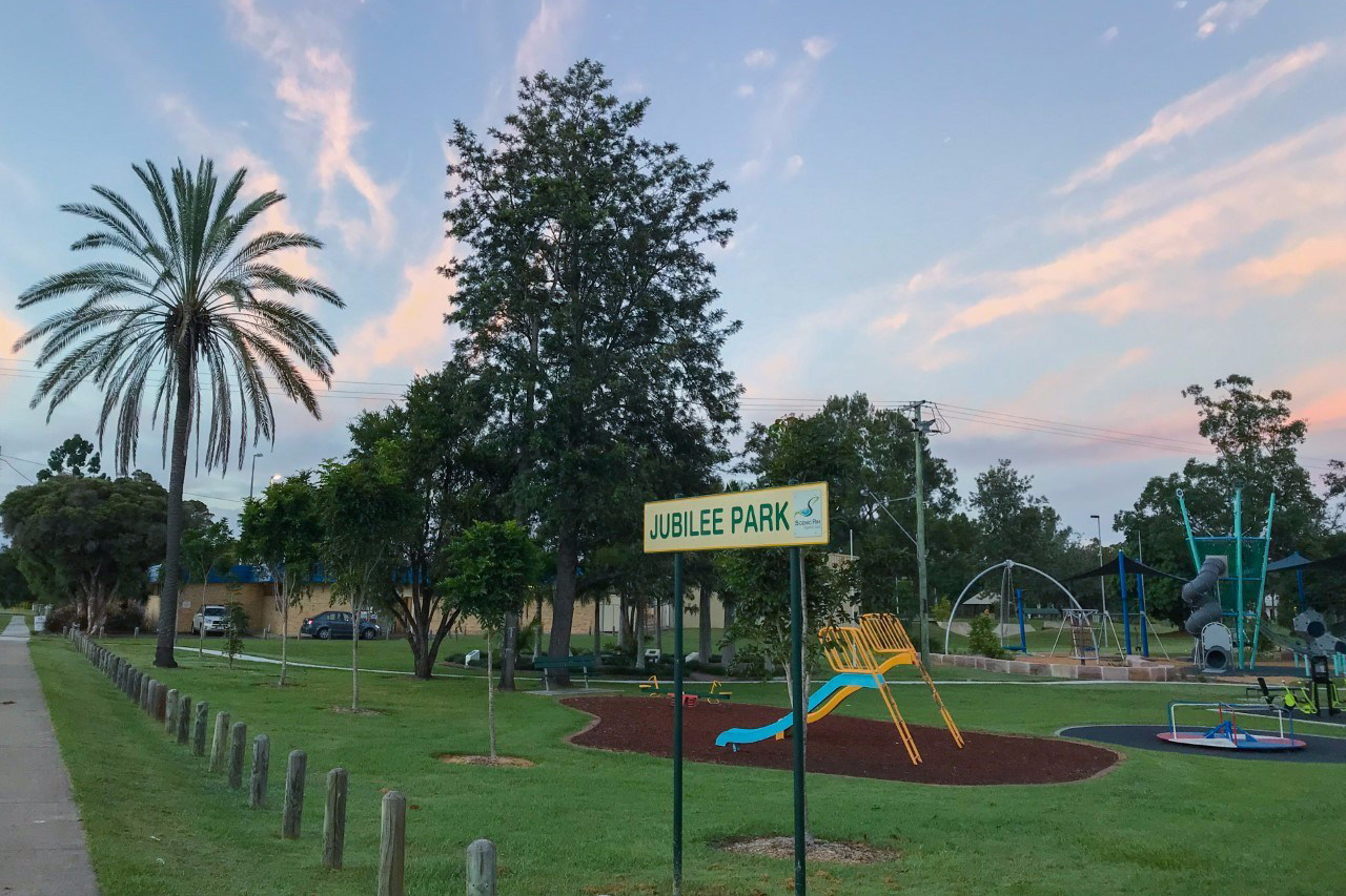 Jubilee Park is a spacious and well-maintained green space on the edge of Beaudesert CBD, between the town’s library and swimming pool.